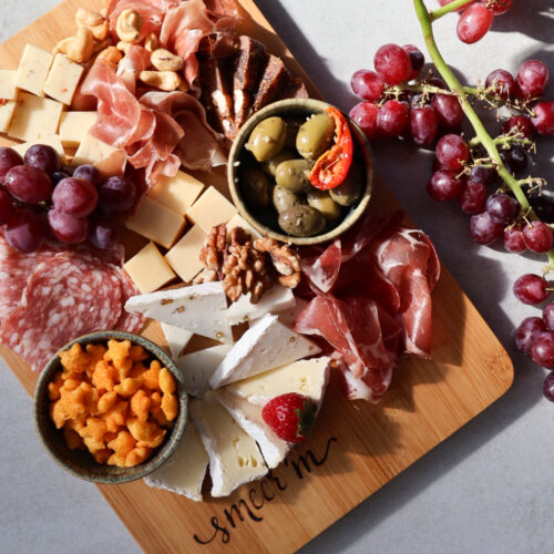 Manchego kaas - oude kaas - jong belegen kaas - 5 Franse zachte kazen - spianata romana - chorizo - fuet - gedroogde worstjes - serranoham - parmaham - mortadella - tomatentapenade - aioli - pesto - hummus - olijven - vijgen - druiven - rood fruit - diverse noten - toast - brood