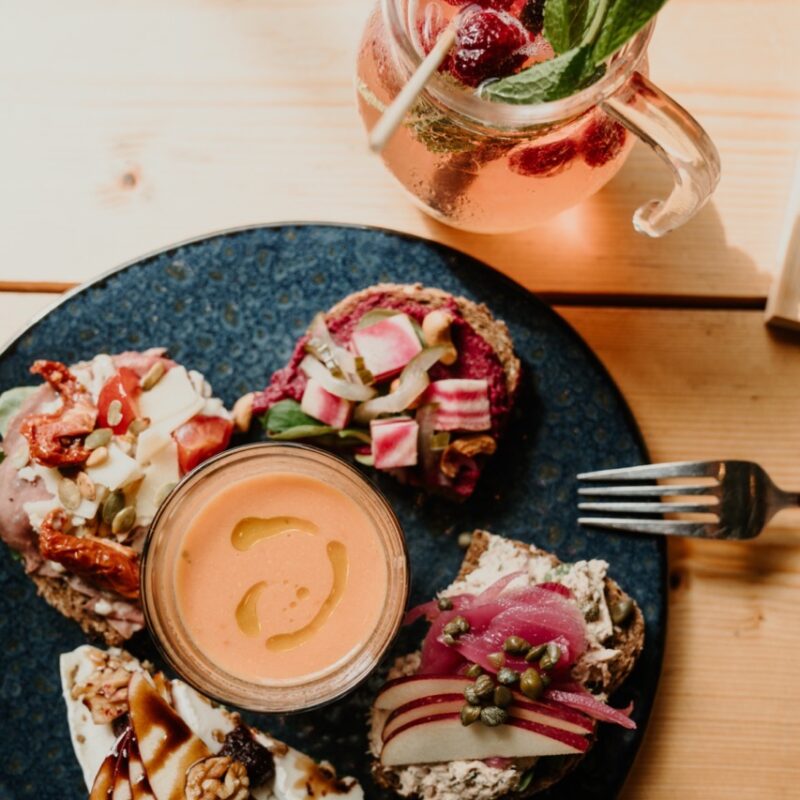 Onze salades worden standaard geserveerd met brood en kruidenboter. Liever geen brood? We hebben ook glutenvrije crackers.